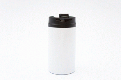 Trendiger, leicht isolierter Becher für ein Heissgetränk, angeschrieben mit deinem Namen (Trinkseite) und einem witzigen Statement (gegenüberliegend).